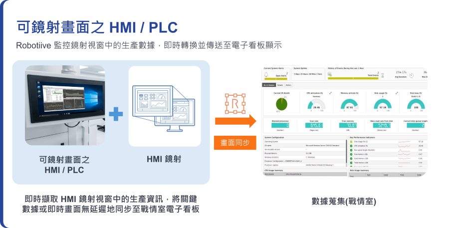 將 HMI 畫面鏡射至電腦,Robotiive 直接讀取視窗內容並同步資料至 MES/ERP